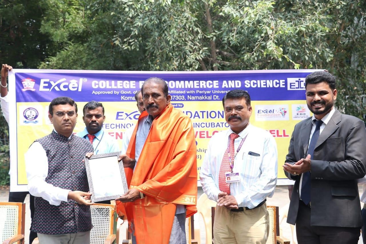 Excel College for Commerce and Science, Komarapalayam, has been awarded the prestigious title of: “Best Entrepreneurship Development Cell Coordinator”