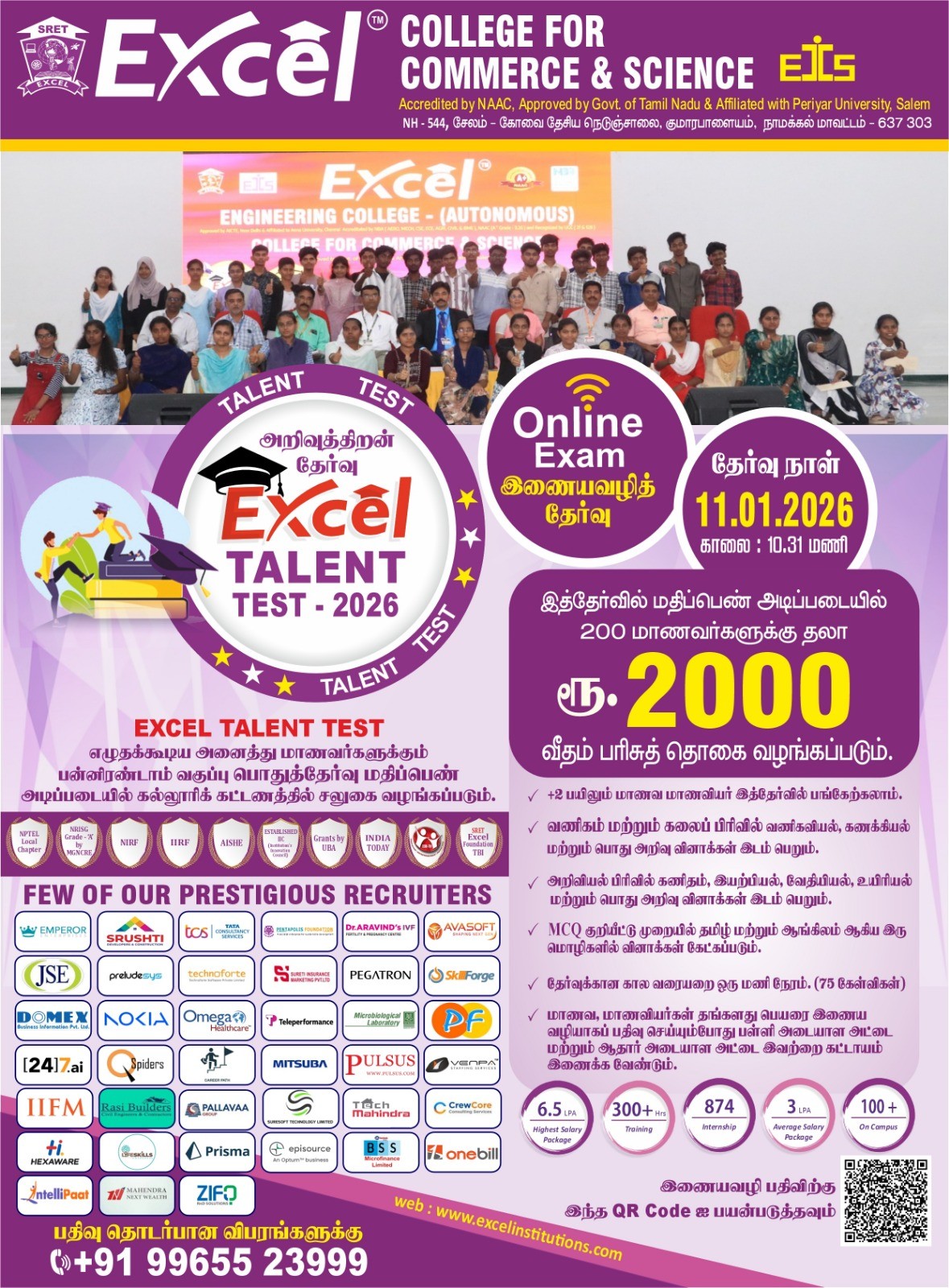 Excel TART Exam(Online) - 11.01.2026 - View & Registration