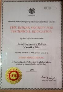 - Institutional Membership: Excel Engineering College, Komarapalayam, was officially admitted as an institutional member of the Indian Society for Technical Education (ISTE) by the Executive Council in 2008. The college is now fully entitled to all the privileges granted by the ISTE constitution and by-laws.