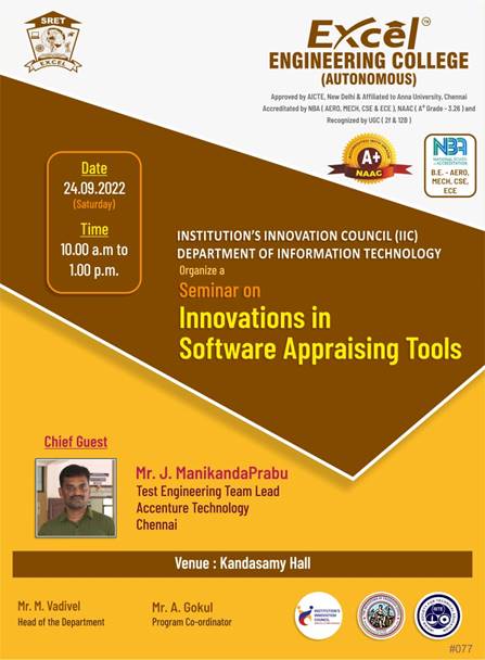 Department of information technology organize a Seminar on Innovations in Software Appraising Tools