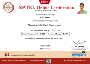 | 6. | 2018-19 | Shri Kubhera Parivar, Coimbatore. | Placement Training | 11.09.2018 – 10.09.2021 |