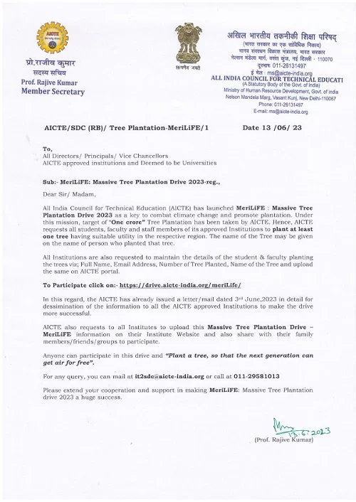 Save The Earth- You,Your family, Friends, Colleagues and Students can participate in AICTE Tree plantation drive 2023.