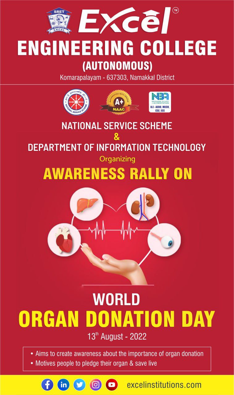 Excel Engineering College(Autonomous), National Service Scheme and Department of Information Technology organizing an Awareness Rally in the view of World Organ Donation Day on 13.08.2022.