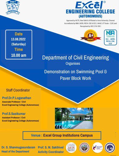 Department of Civil Engineering Organizes the Demonstration on Swimming Pool & Paver Block Work On 13.08.2022 @10AM