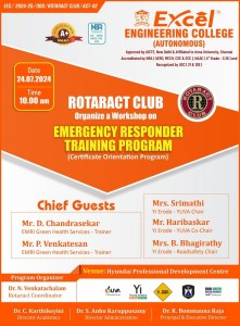 Excel Engineering college Rotaract Club organizes workshop ‘Emergency Responder Training Program’ on 24.07.2024.