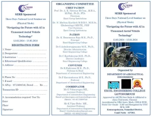 Department of Aeronautical Engineering of Excel Engineering College (Autonomous), Organizes a SERB sponsored Three days National level Seminar on “Navigating the Future with AI in Unmanned Aerial VehicleTechnology” on 13.03.2024 – 15.03.2024 at Aeronautical Engineering Department.