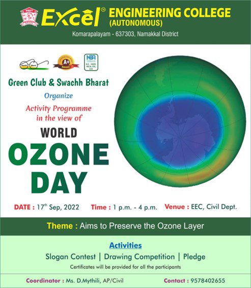 Excel Engineering College, Green Club& Swachh Bharat Organize activity Programme in view of World Ozone Day on 17.09.2022 at 1 pm @ EEC Civil Department