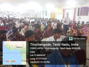 Organized Tamil Nadu State Council for Science and Technology (TNSCST) supported six days training program on “Science and Technology Capacity Building for Industrial Needs” in two phases during the period, Phase I: 24 .03.2022, 25.03.2022 & 28.03.2022 (3 days), Phase II: 29.03.2022 to 31.03.2022 (3 days). This program was exclusively designed for the Final year Engineering and Diploma Students located in and around Komarapalayam. No registration fee for participants. The Industries, Banking, HR Executives and Educationalists are invited as resource persons to deliver lectures in today’s industrial needs. The training will be very beneficial to the young budding engineers to enrich their knowledge and carry out their career growth in a successful manner.There are 164 participants for phase I and 153 participants for phase II totally 300 participants were participated and benefited.
