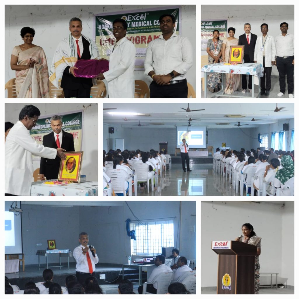 News & EventsNews & Events Energize 24 – Onstage Programme Day 1 ENERGIZE 24 onstage programme of Solo song, Mime, Solo dance, Folk dance and Duet song. Four houses of students actively Energize 24 – Offstage Programme Day 2 Second day we started programme of Face Painting, Tamil speech, Bottle art, Drawing, Nail Art, Cook without Fire, Gift Card Energize 24 – Offstage Programme Day 1 First day we started programme of Rangoli, Flower Arrangement, Photography, Pot Painting, Hair do, Painting, Mehandi, Art from Waste. Students Energize 24 – Sports & Cultural Meet Excel Homoeopathy Medical College conducted Annual cultural and Sports meet on November 04 to November 16 in the name of CME – SURGICAL CASES TREATED WITH HOMOEOPATHY & LEARNING METHODS OF MATERIA MEDICA CME was conducted for First to final year and CRRI students on 30/09/2024 at AYUSH auditorium from 09.30 to 04.30.pm. ONAM CELEBRATION – “MELAM 24” Excel Homoeopathy Medical College celebrated Onam in the name of “MELAM 24” on 13-09-24 at medical campus. The principal inaugurated SWACHHATA HI SEVA CAMPAIGN As per the directions of Ministry of AYUSH and National Commission for Homoeopathy, Swachhata Hi Seva Campaign was conducted in TEACHERS DAY CELEBRATION On September 2024, students from Excel homoeopathy medical College came together to celebrate “Teacher's Day along with 19th anniversary of WEBINAR – BASICS OF RESEARCH IN STSH EHMC has conducted webinar for Basics of Research in STSH project for students on 20/08/2024 at AYUSH Auditorium. Resource person WOMEN EMPOWERMENT DAY 2024 Excel homoeopathy medical college conducted a special program on “women empowerment day” on 14.08.2024 at 10.00am at Ayush auditorium. INDEPENDENCE DAY CELEBRATIONS 2024 Excel homoeopathy medical college conducted Contests, Competitions like Essay writing and drawing to celebrate Independence Day. HERBAL GARDEN VISIT FOR FIRST BHMS We are proud to announce that our I- BHMS students were visited the CENTER OF MEDICINAL PLANTS RESEARCH IN HOMOEOPATHY « Previous 1 … 3 4 5 6 7 … 12 Next »