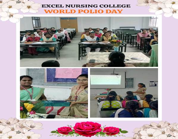 News & EventsNews & Events World Polio Day -2025 World Polio day was conducted by Excel Nursing College (Child Health Nursing department) on 27.10.2025 World Mental Health Day Report A one-day seminar on Mental Health Well-being and the plight of homeless beggars was organized on 9th October 2025 in Report On World Rabies Day – 2025 On behalf of Community Health Nursing department World Rabies Day – 2025 was conducted by Excel Nursing College on 26.09.2025. World Suicidal Prevention Day Report The World Suicidal prevention Day Program was organized on 10th Sep 2025 by Excel Nursing College in collaboration with Komarapalayam Report On National Nutrition Week Celebration-2025 The Department of Nutrition, Excel Nursing College, organised a Program in observance of National Nutrition Week – 2025 on 30th Deworming Day Report – 2025 The Deworming Day Program was organized on 11th August 2025 in collaboration with Komarapalayam Government Hospital at the Rotary Club Report on National Eye Donation Fortnight – 2025 The National Eye Donation Fortnight Program was organized on 25thAugust 2025 in collaboration with Komarapalayam Government Hospital at the Rotary World Breast Feeding Week Celebration Excel Nursing College in collaboration with Komarapalayam Government Hospital organizes an awareness programme on “World Breast Feeding Week celebration” on World Breast Feeding Week Health Expo¬-2025 World breast feeding week -2025 Excel Nursing College conducted the Breast feeding week awareness Health Expo on aug 02-2025,organized by World Ors Day – 2025 Report The World ORS Day Health Awareness Programme was organized by the Department of Community Health Nursing, Excel Nursing College, on World Hepatitis Day – 28.07.2025 The World Hepatitis Day programme was conducted by Department of Medical Surgical Nursing on 28.07.2025. The Programme was started at World Conservation Day Report On July 28th , 2025 Excel Nursing College and Excel Engineering College Collaborate with kallankattuvalasu PHC celebrate the world conservation 1 2 3 … 11 Next »